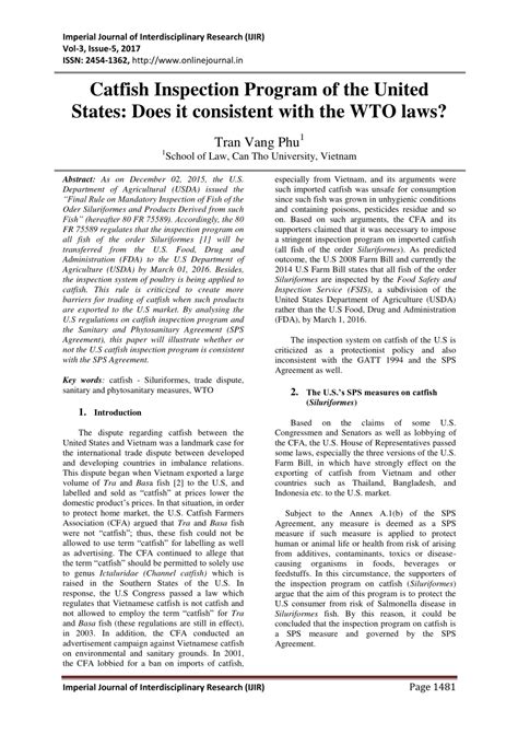 The Department of Agriculture's Catfish Inspection Program